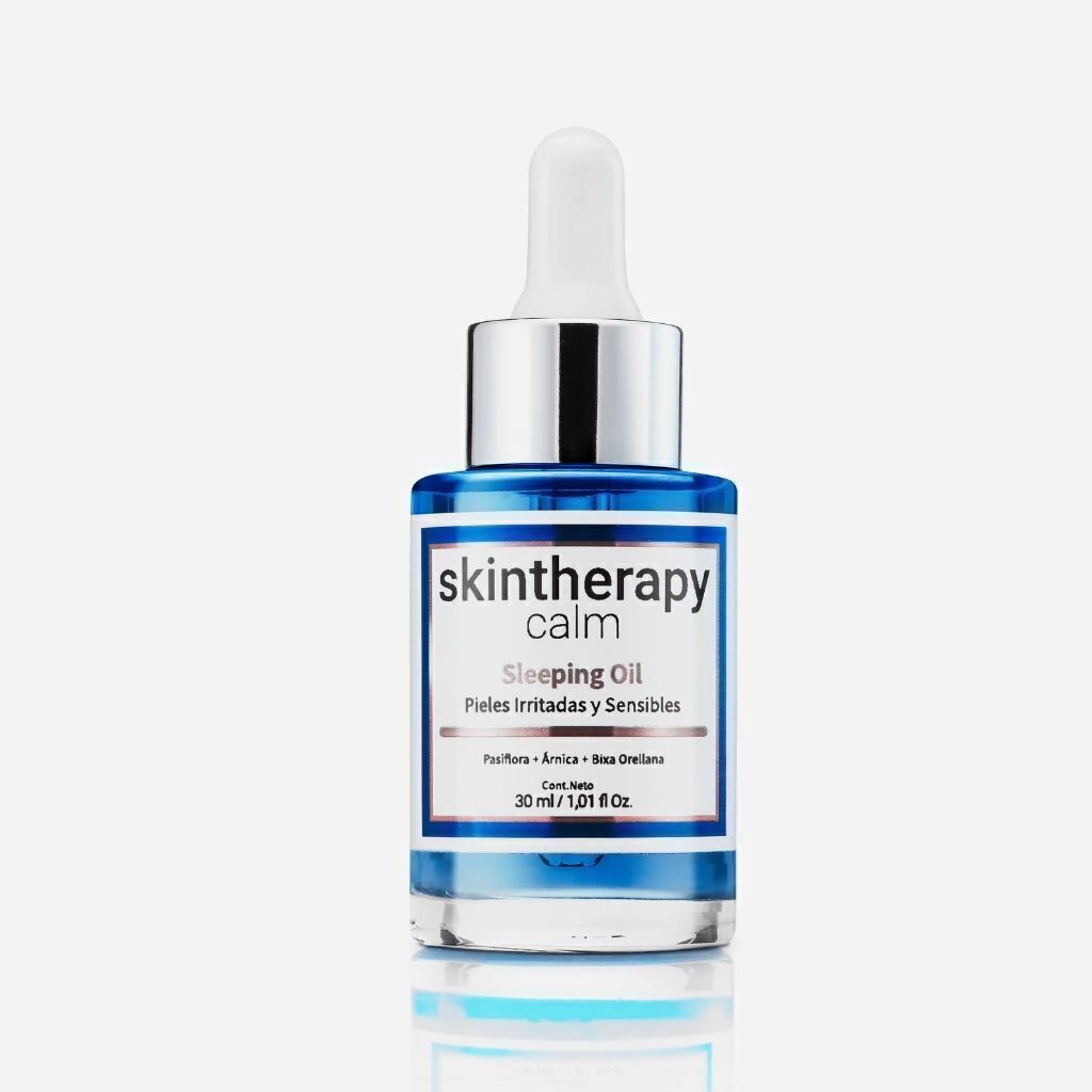 CALM sleeping oil es un aceite facial calmante y reparador con extracto de Pasiflora, Árnica y Bixa Orellana, ingredientes que ayudan a reducir la sensibilidad, el enrojecimiento y la reactividad de la piel. Su fórmula nutre profundamente, refuerza la barrera cutánea y proporciona un efecto antioxidante y drenante. Ideal para pieles sensibles, irritadas o con tendencia a la rosácea.